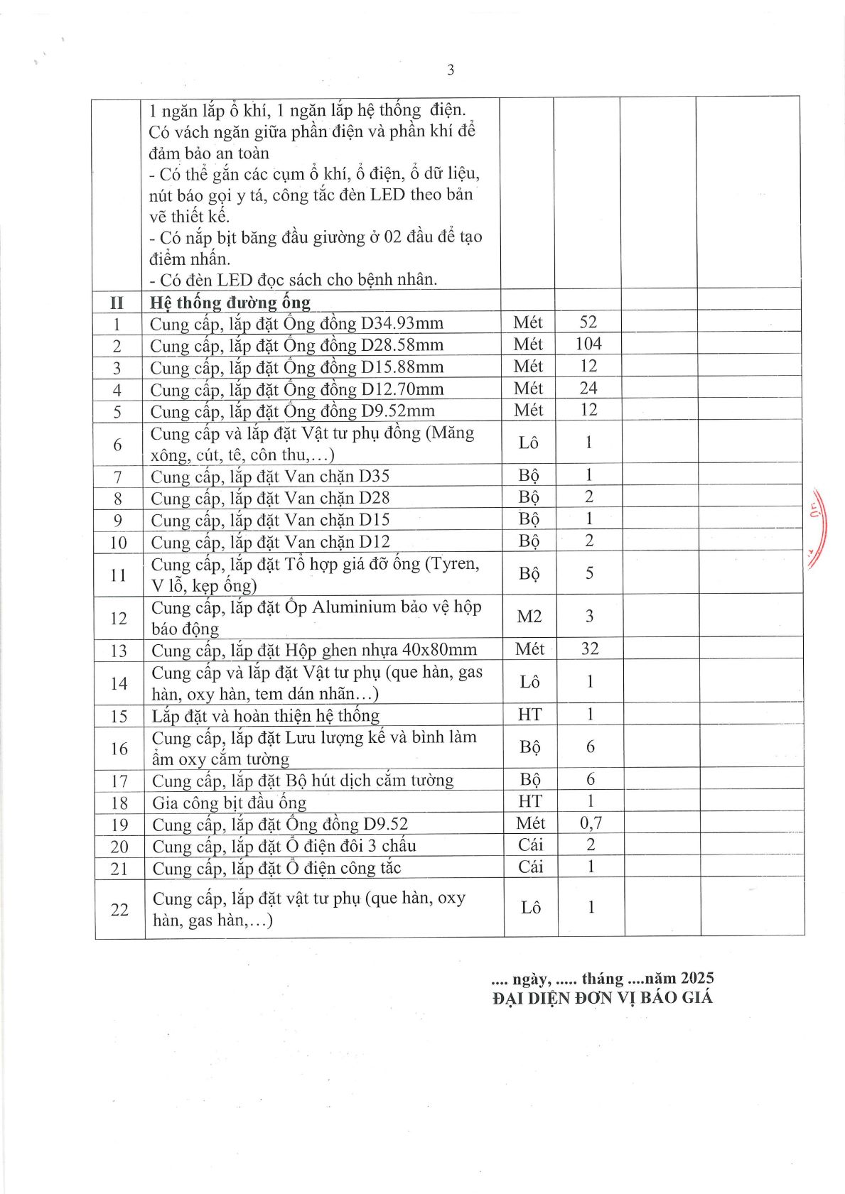 Báo giá thay thế vật tư phụ trợ