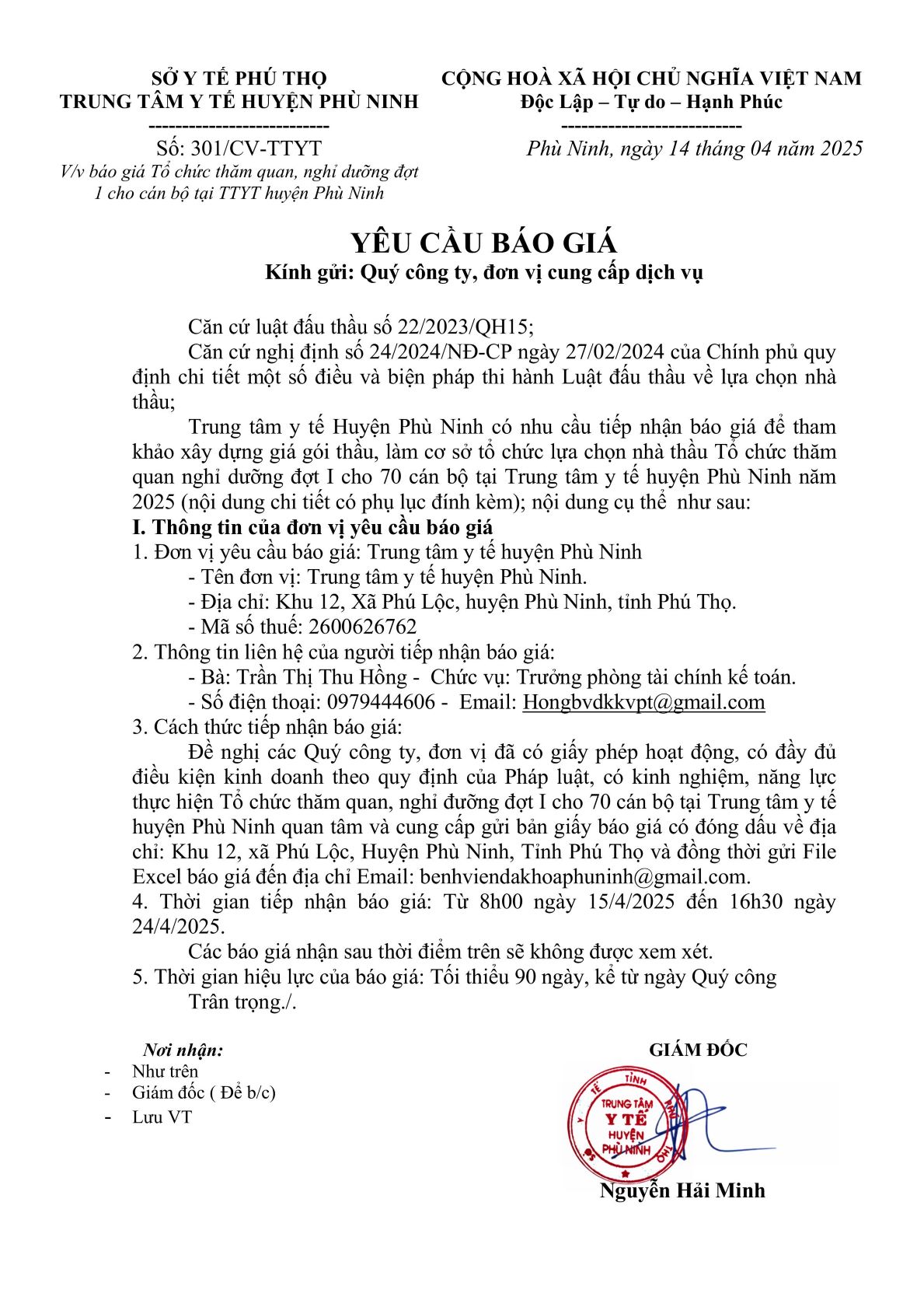 Báo giá Tổ chức thăm quan, nghỉ dưỡng đợt 1 cho cán bộ tại TTYT huyện Phù Ninh